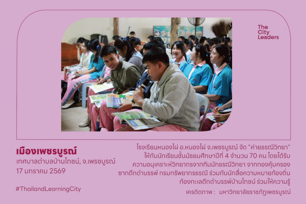 17 มกราคม 2569 โรงเรียนหนองไผ่ อ.หนองไผ่ จ.เพชรบูรณ์ จัด “ค่ายธรณีวิทยา” ให้กับนักเรียนชั้นมัธยมศึกษาปีที่ 4 จำนวน 70 คน โดยได้รับความอนุเคราะห์วิทยากรจากทีมนักธรณีวิทยา จากกองคุ้มครองซากดึกดำบรรพ์ กรมทรัพยากรธรณี ร่วมกับนักสื่อความหมายท้องถิ่น ท้องทะเลดึกดำบรรพ์บ้านโภชน์ ให้ความรู้เกี่ยวกับธรณีวิทยาและซากดึกดำบรรพ์ในจังหวัดเพชรบูรณ์และท้องทะเลดึกดำบรรพ์บ้านโภชน์