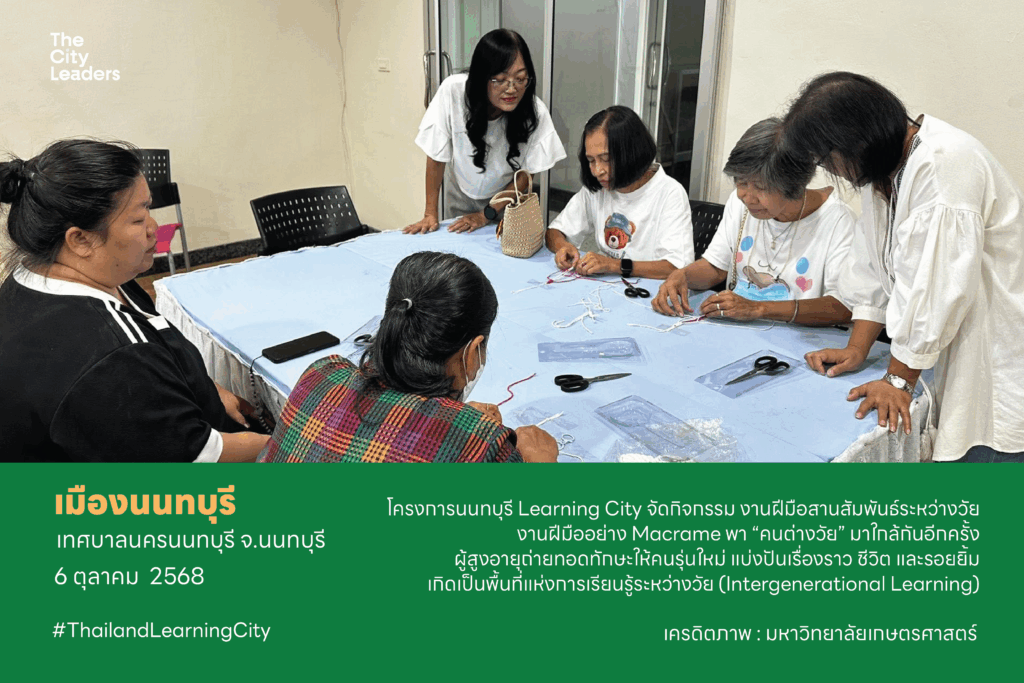 6 āļāļļāļĨāļēāļāļĄ 2568 āļāļāļāļāļļāļĢāļĩ Learning City āļāļąāļāļāļīāļāļāļĢāļĢāļĄ āļāļēāļāļāļĩāļĄāļ·āļāļŠāļēāļāļŠāļąāļĄāļāļąāļāļāđāļĢāļ°āļŦāļ§āđāļēāļāļ§āļąāļĒ āļāļēāļāļāļĩāļĄāļ·āļāļāļĒāđāļēāļ Macrame āļāļē âāļāļāļāđāļēāļāļ§āļąāļĒâ āļĄāļēāđāļāļĨāđāļāļąāļāļāļĩāļāļāļĢāļąāđāļ āļāļđāđāļŠāļđāļāļāļēāļĒāļļāļāđāļēāļĒāļāļāļāļāļąāļāļĐāļ°āđāļŦāđāļāļāļĢāļļāđāļāđāļŦāļĄāđ āđāļāđāļāļāļąāļāđāļĢāļ·āđāļāļāļĢāļēāļ§ āļāļĩāļ§āļīāļ āđāļĨāļ°āļĢāļāļĒāļĒāļīāđāļĄ āđāļāļīāļāđāļāđāļāļāļ·āđāļāļāļĩāđāđāļŦāđāļāļāļēāļĢāđāļĢāļĩāļĒāļāļĢāļđāđāļĢāļ°āļŦāļ§āđāļēāļāļ§āļąāļĒ (Intergenerational Learning)
